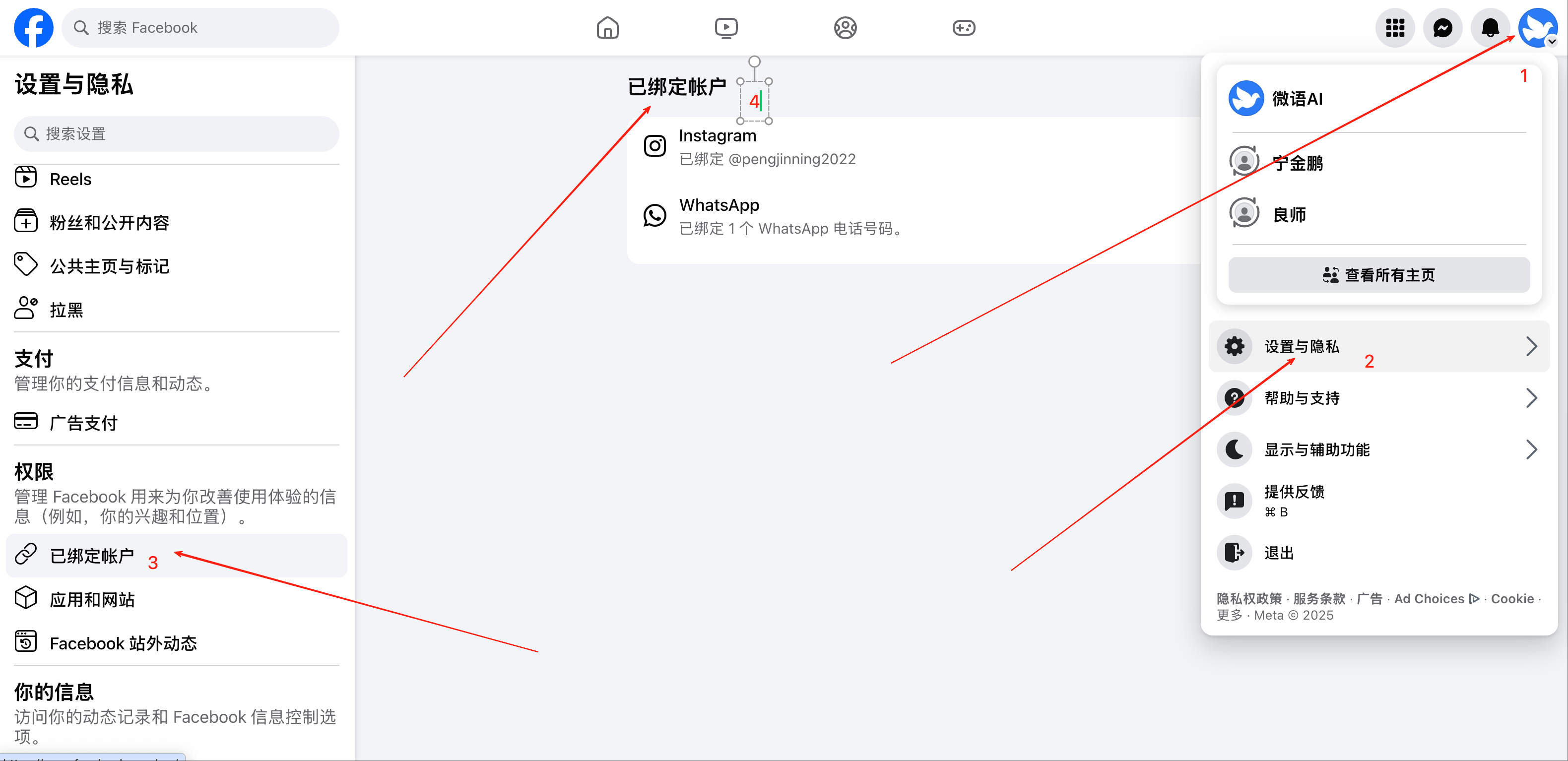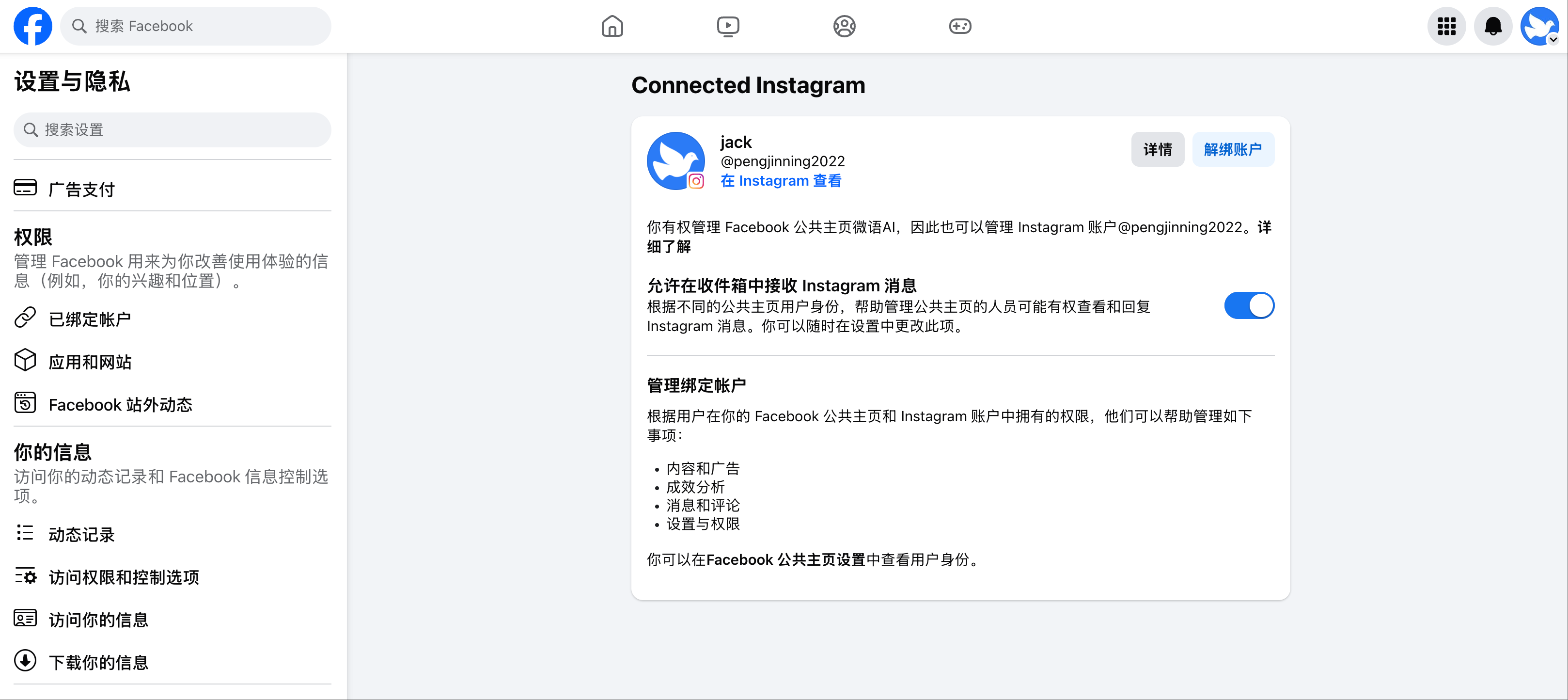 - 将 Instagram 账户与您的 Facebook 公共主页绑定或解绑