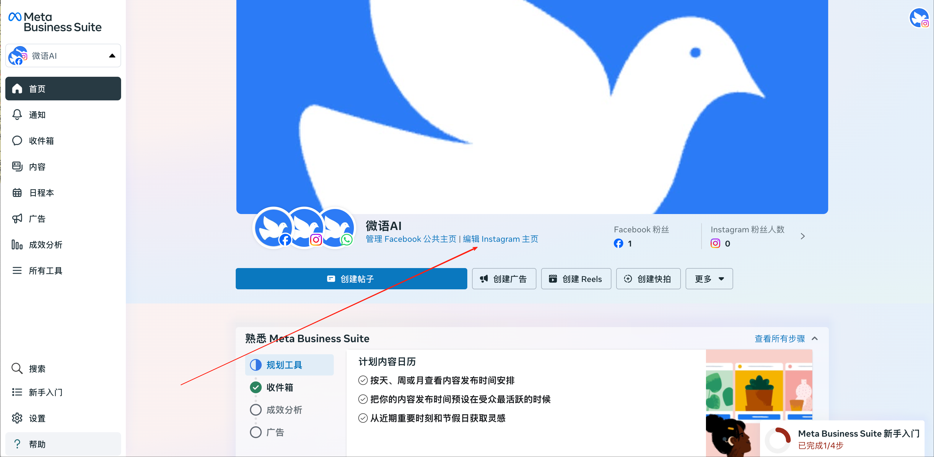 - 将 Instagram 账户与您管理的 Facebook 公共主页绑定简介